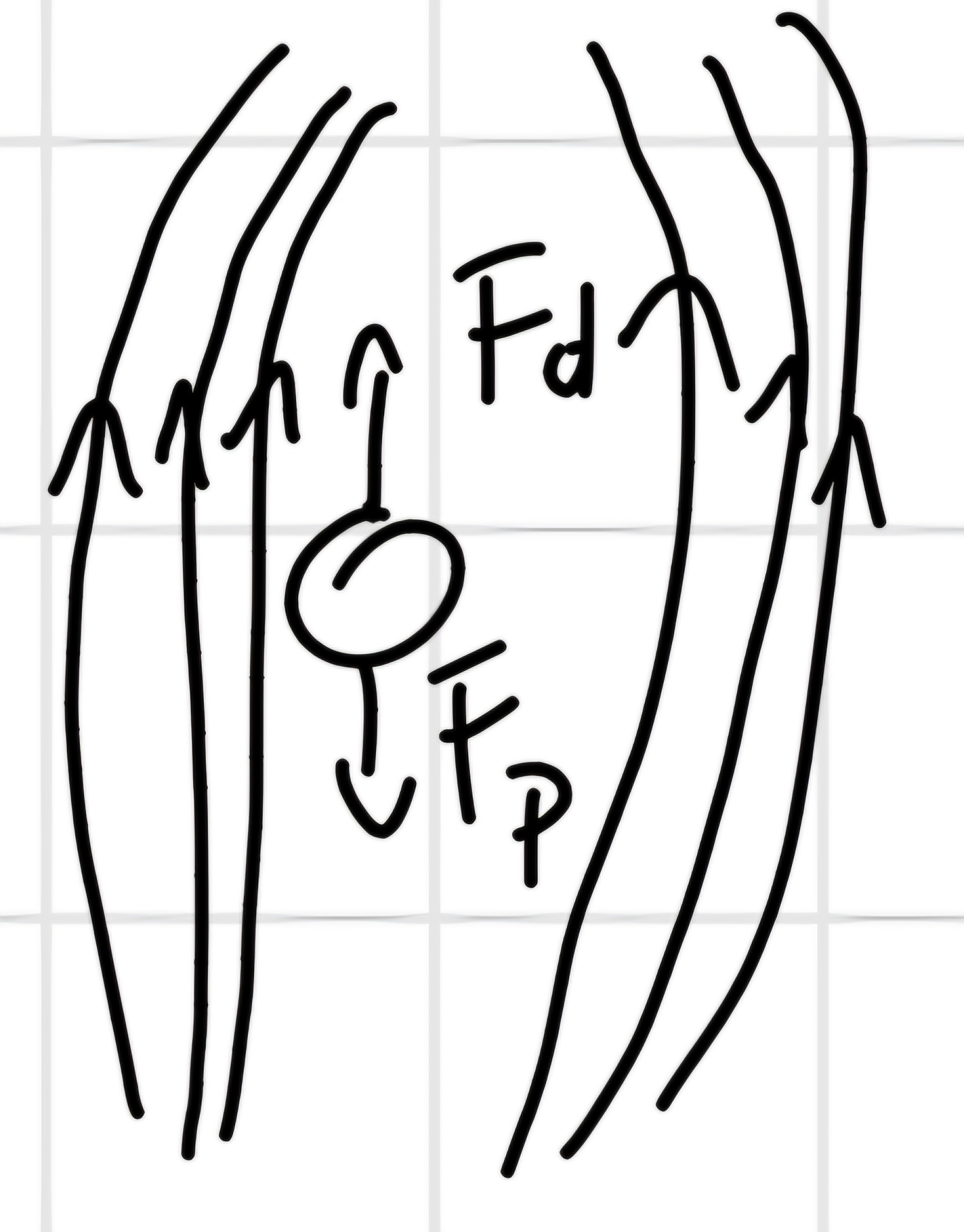 For spherical particles of radius r and R_e low: F_{drag} = -6 * \pi * \eta * r * v