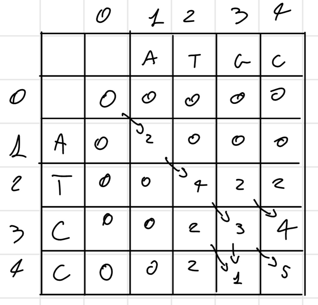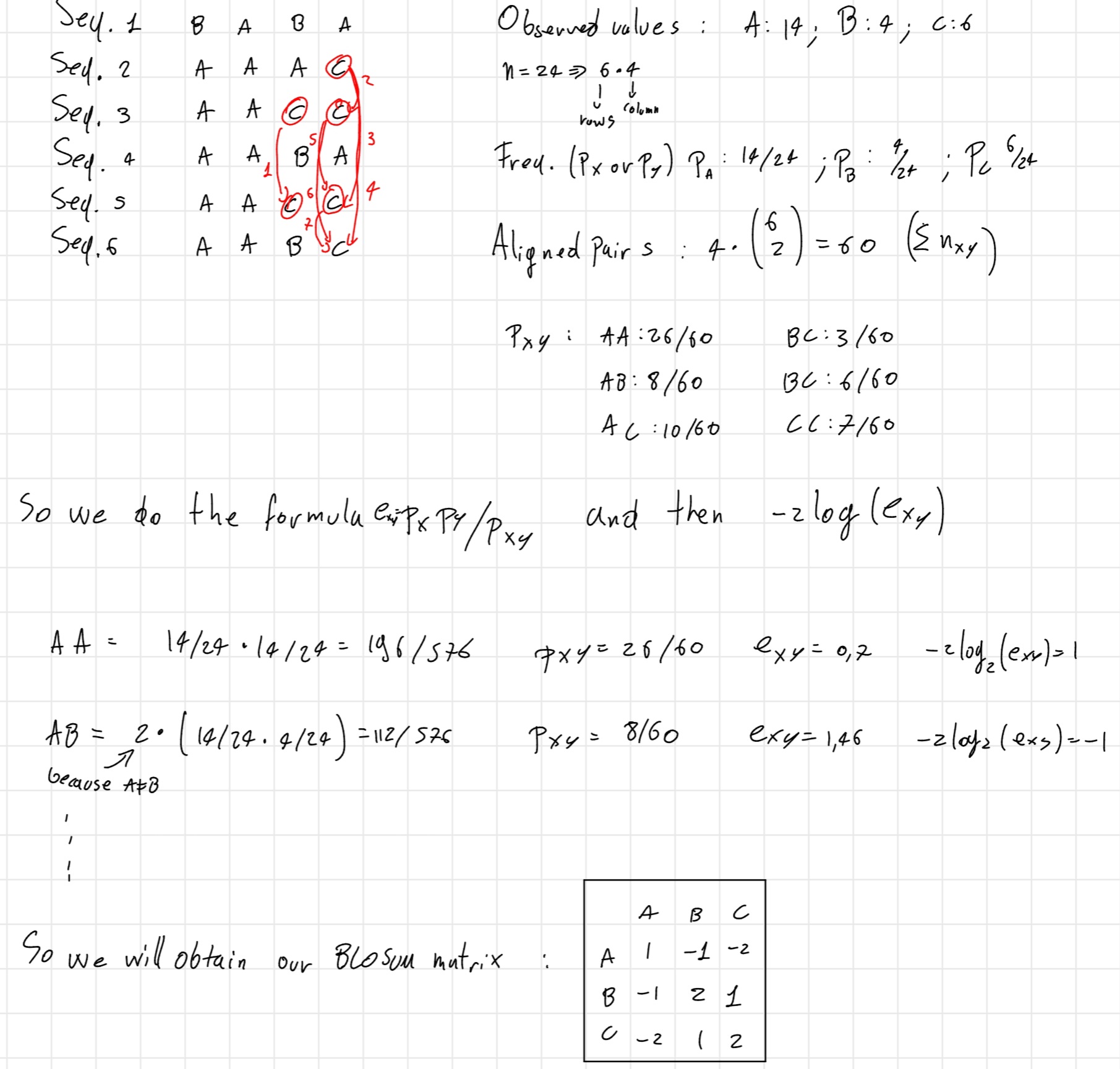 Now if we have 2 sequences we need a 2d-matrix, 3 sequences 3d-matrix, n sequences nd-matrix. This approach is very complex, it’s called NP-complete(Non Polynomial) \implies very difficult and a lot of time.
