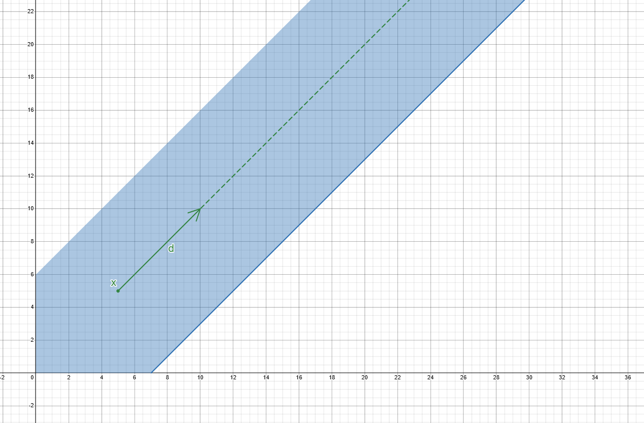An unbounded feasible direction d of a polyhedron P is a nonzero vector such that ,from a point \underline{x} \in P, all points of the form \underline{x} + \lambda d \: with \lambda > 0 also belongs to P. The set of such points is often called the ray of d through \underline{x}.