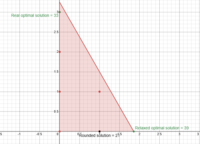 Everything looks fine until we realize that our optimal solution of producing 4.789 x_1, 2.111 x_2, 3.002 x_3 and 9.12 x_4 balls ( completely random numbers) is not achievable since we cannot produce 9.12 units of something.